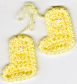 Bib is crocheted with yellow & white yarn