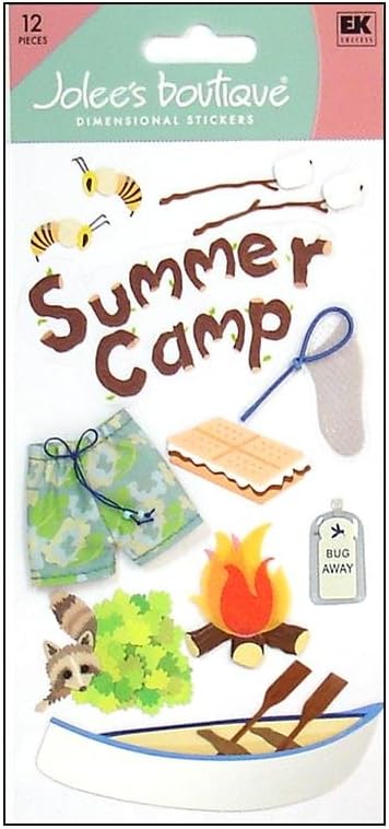 This set has 12 stickers that include bees, canoe, bug net, marshmallow on a stick, and more.