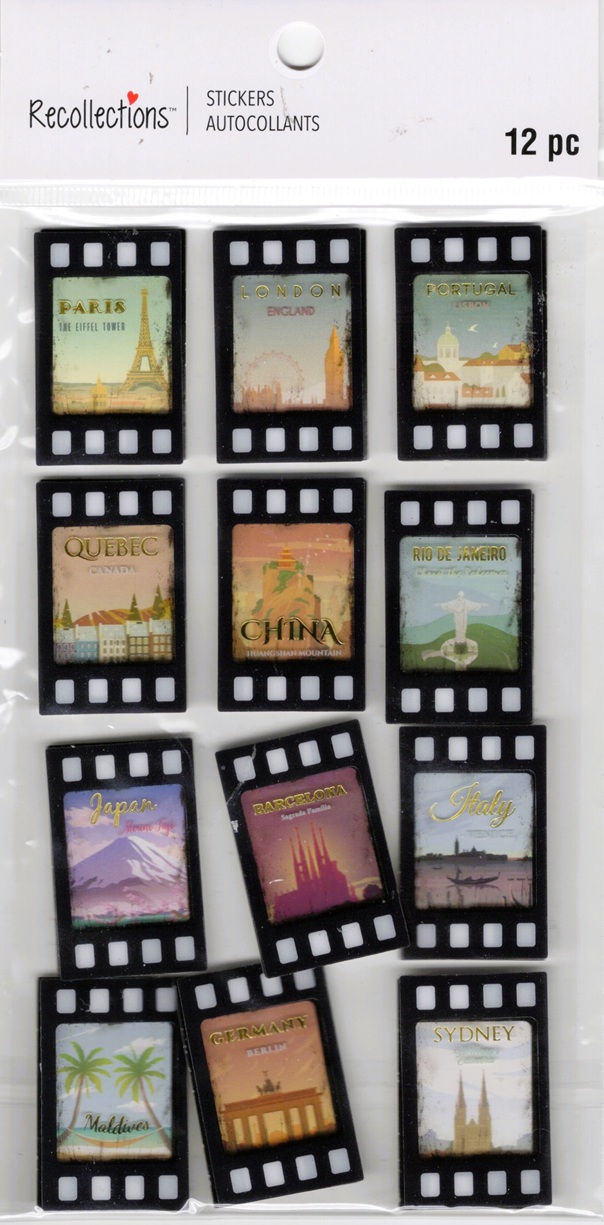 Travel Videos, 3D scrapbook stickers 4x7" (Recollections)
